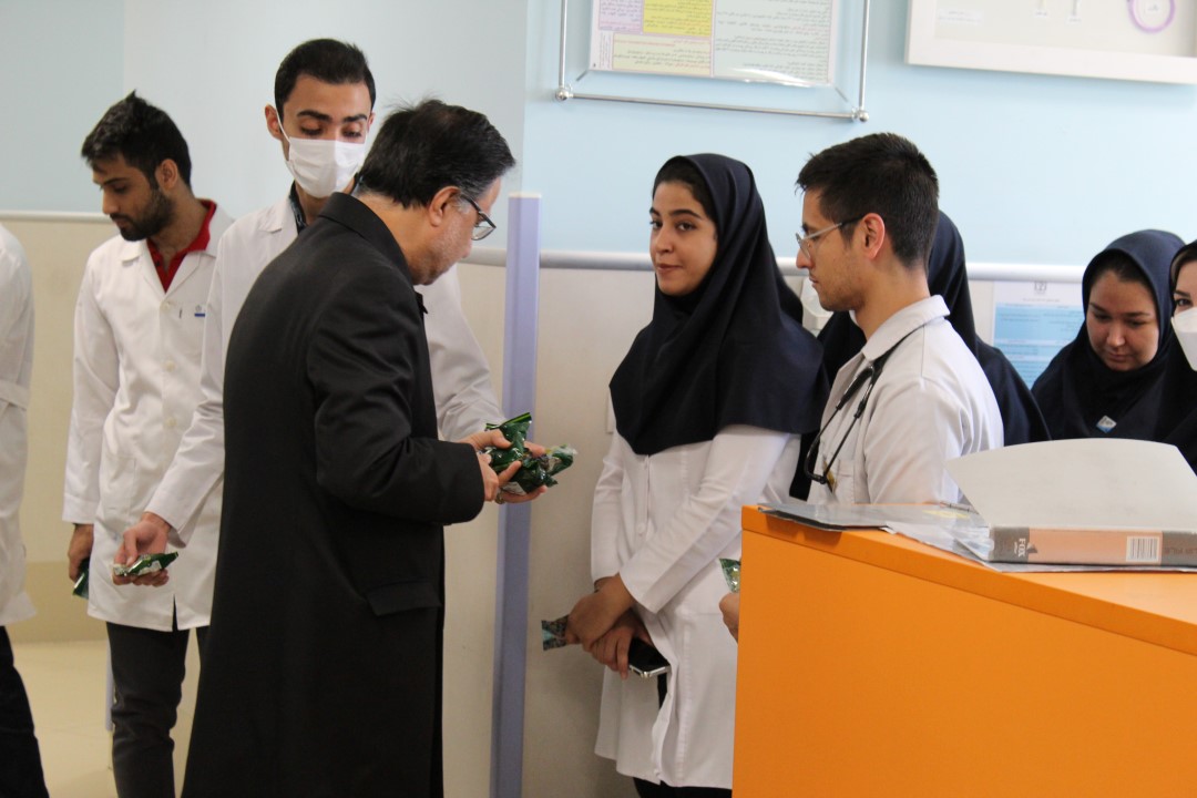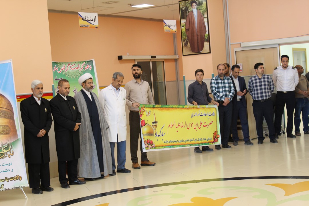 چهارشنبه 10 خرداد ماه 1402 خدام حرم مطهر امام رضا (ع) با حضور در بیمارستان ولایت ضمن عرض تبریک و شادباش فرخنده میلاد با سعادت امام رضا (ع) با حضور در بخش های درمانی و اهدا شاخه نبات متبرک به پرسنل، بیماران و همراهان بیمارستان، این عید را خدمت ایشان تبریک عرض نمودند